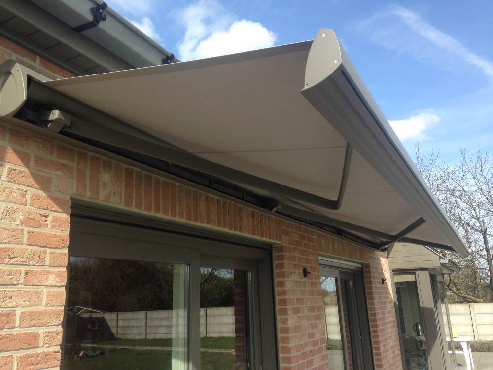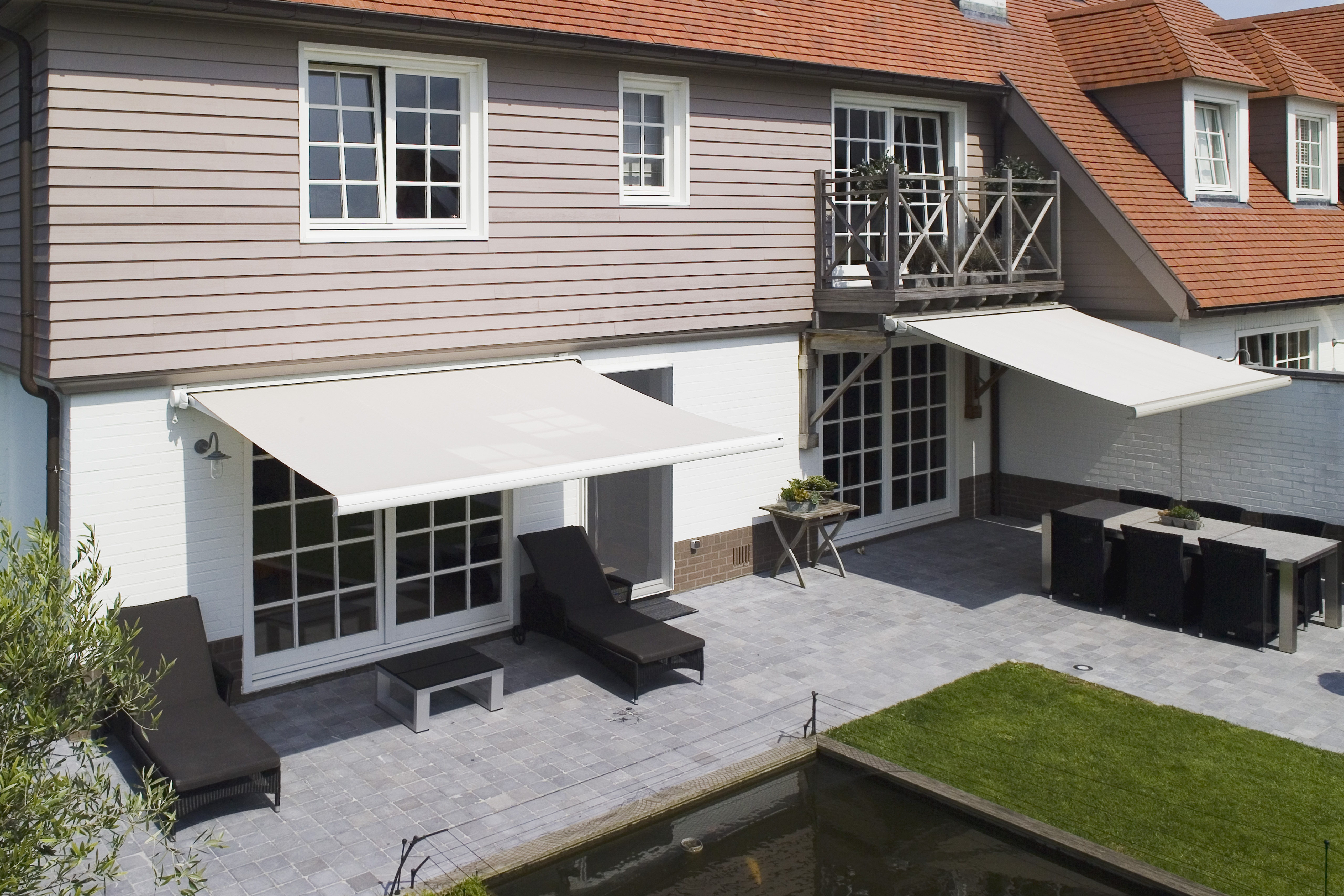 Protections Solaires Harol : Store Lx 530 4750 x4000 mm + capteur vent éolis 3d Telis 4 - Coloris Ral 1014 + Screens Harol SC 800 - Chantier à Mouscron