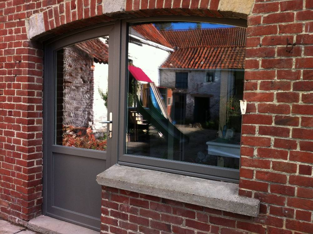 Châssis Deceuninck Gris Quartz RAL 7039 cintré - Chantier à Peronnes