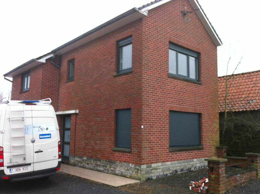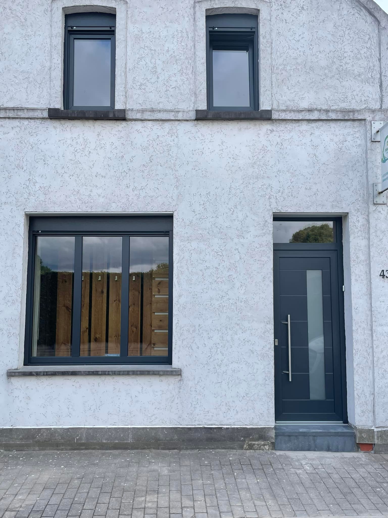 Châssis et Porte Deceuninck Gris Anthracite RAL 7016 avec volets roulants - Chantier à Antoing