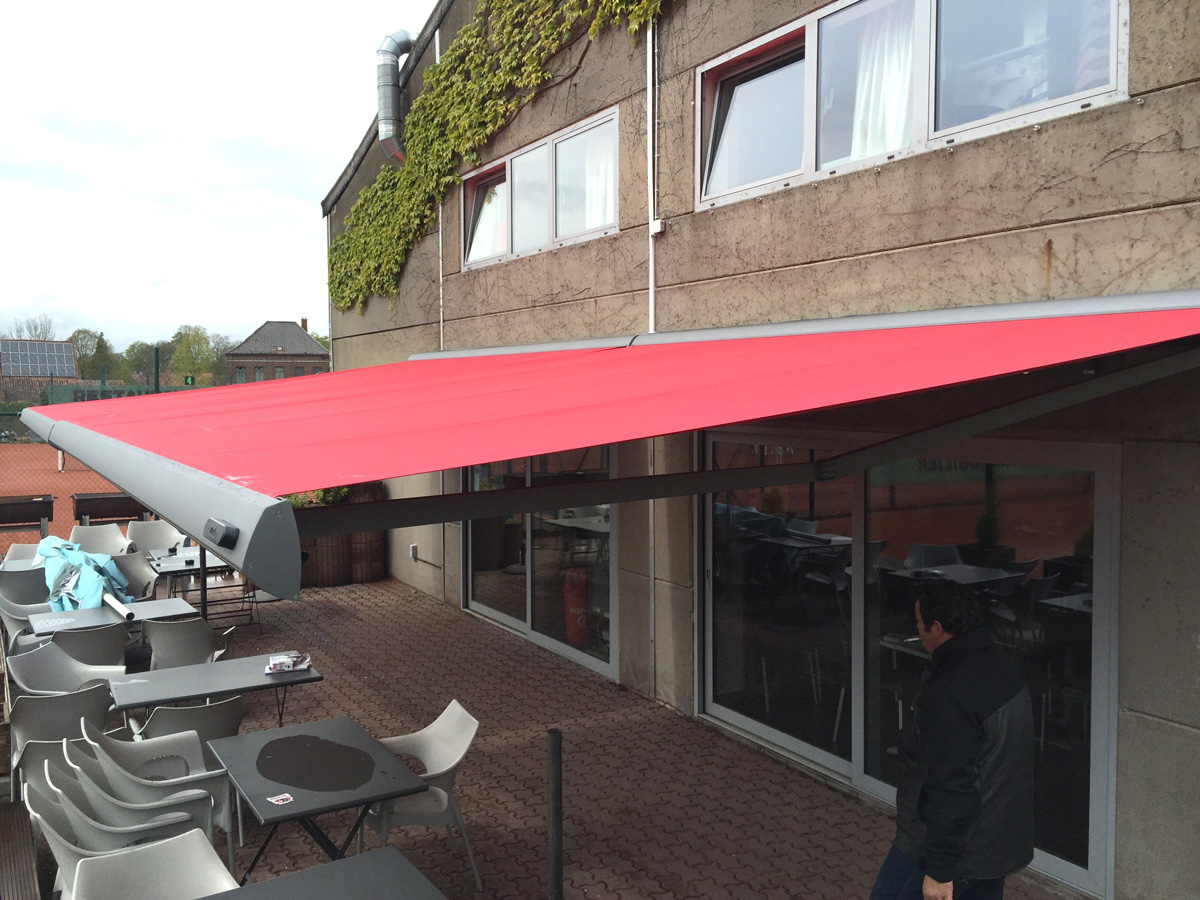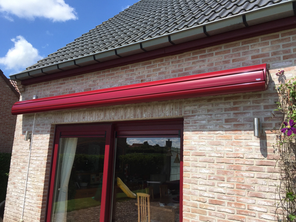 Protections Solaires Harol - Store LX 530 avec variovolant motorisé rouge - Chantier à Leuze