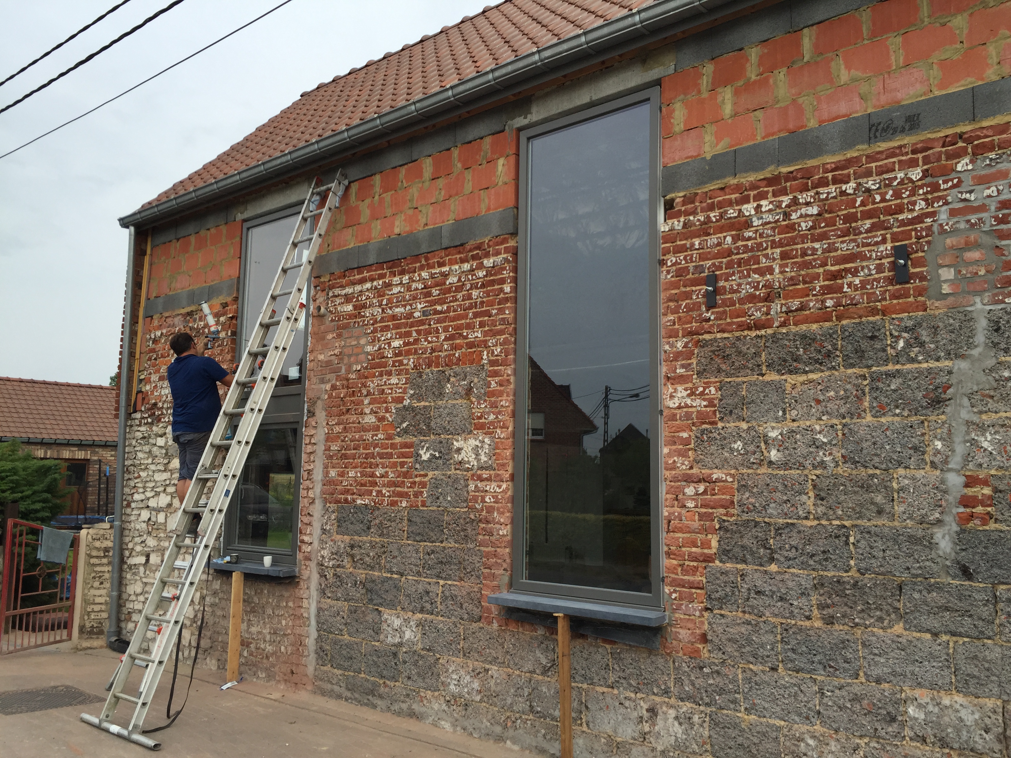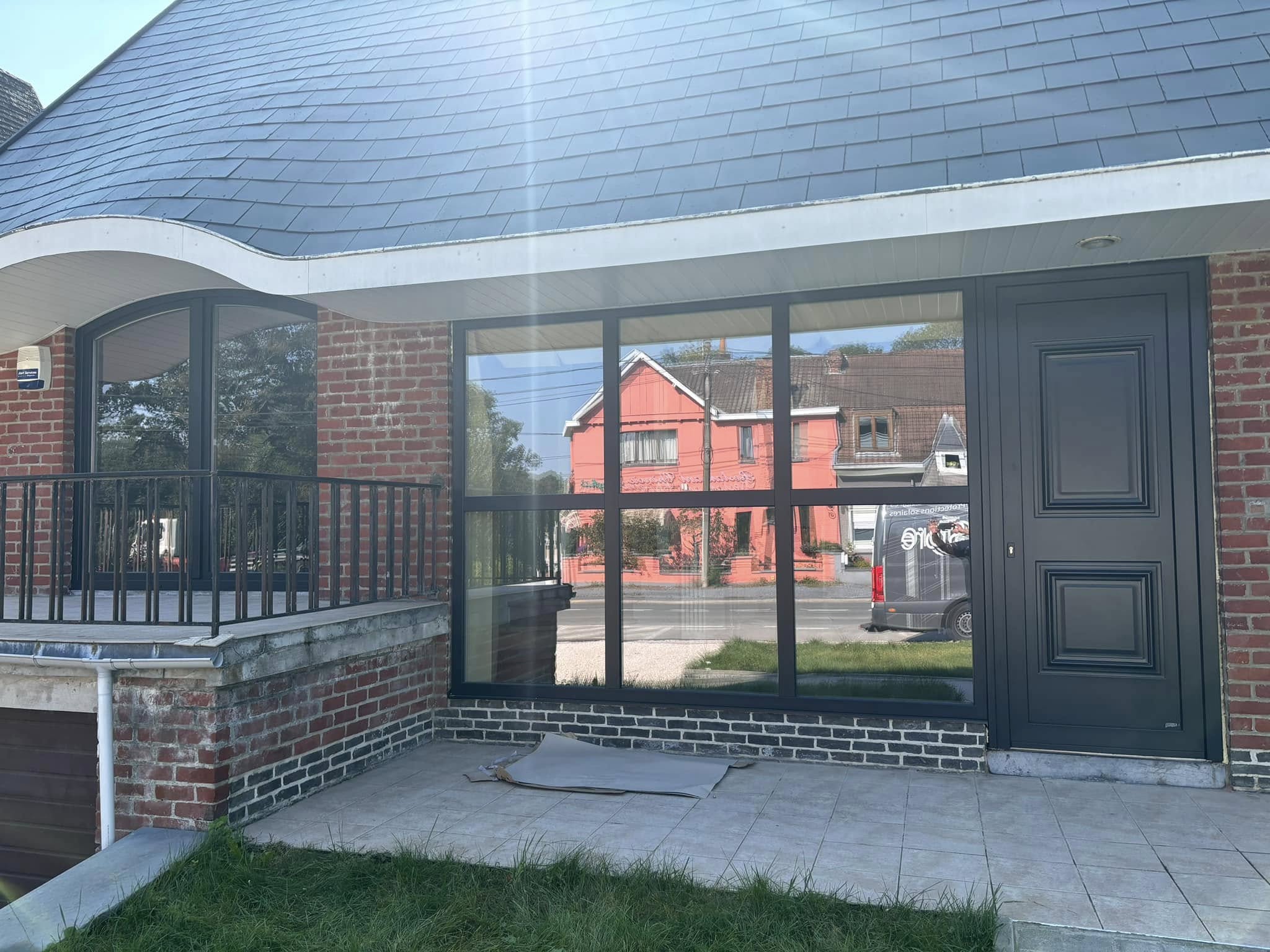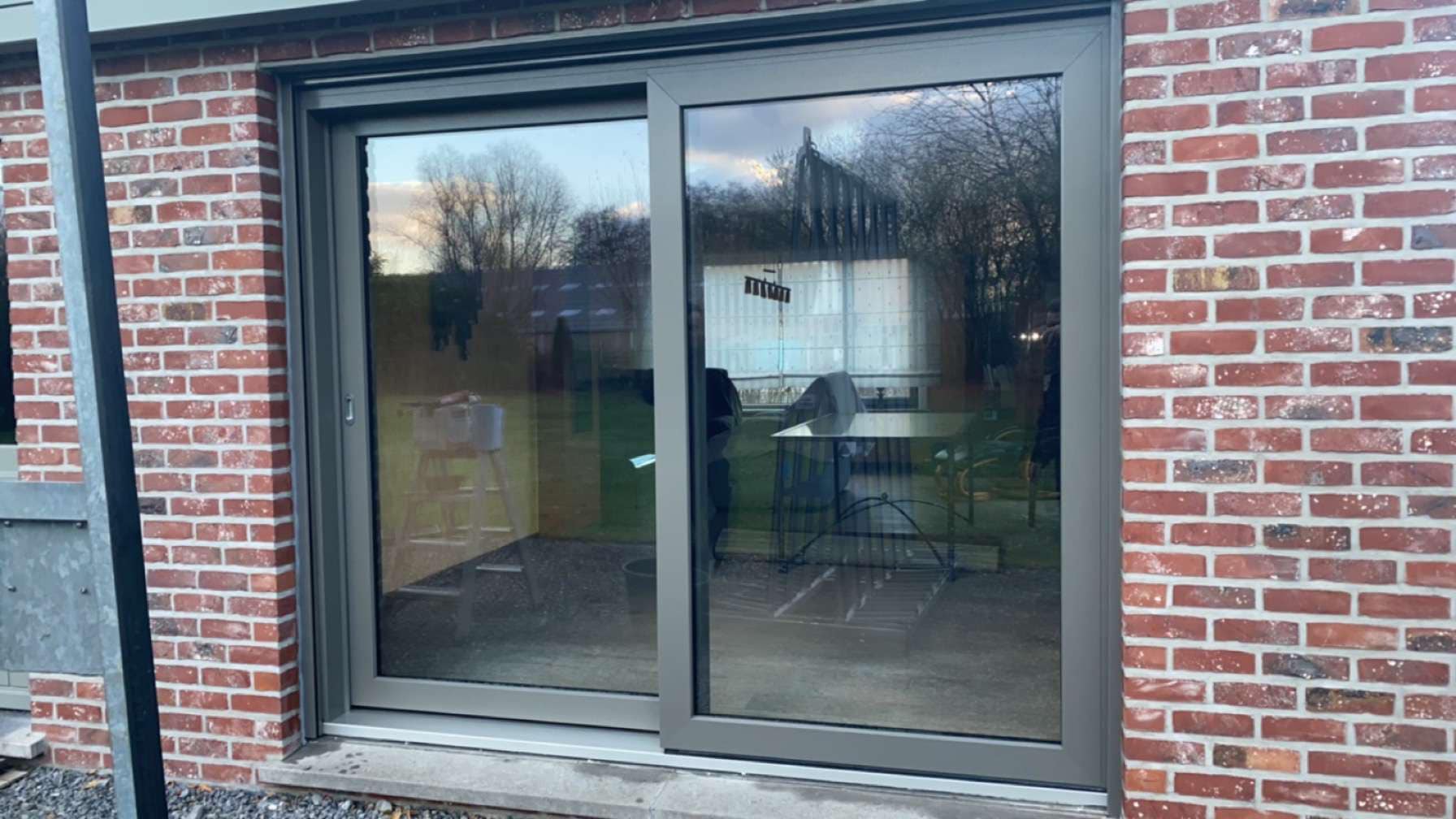 Châssis et portes Deceuninck Gris Quartz RAL 7039 - Chantier à Tournai