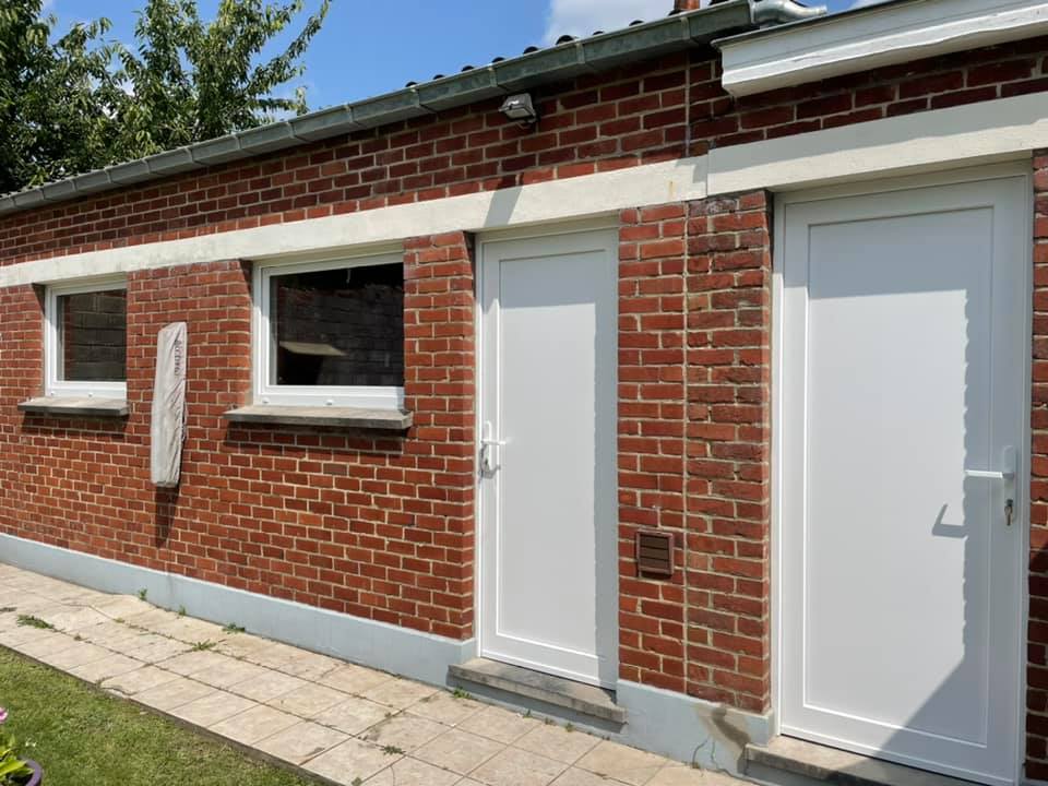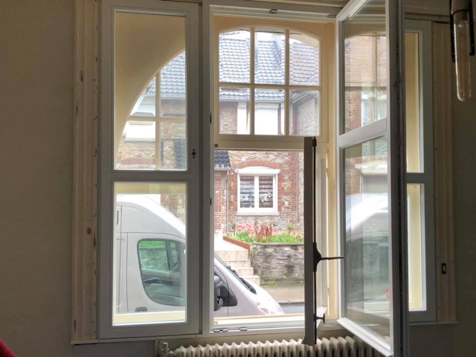 Châssis et portes en bois - Chêne peint en blanc RAL 9010 - Chantier à Tournai