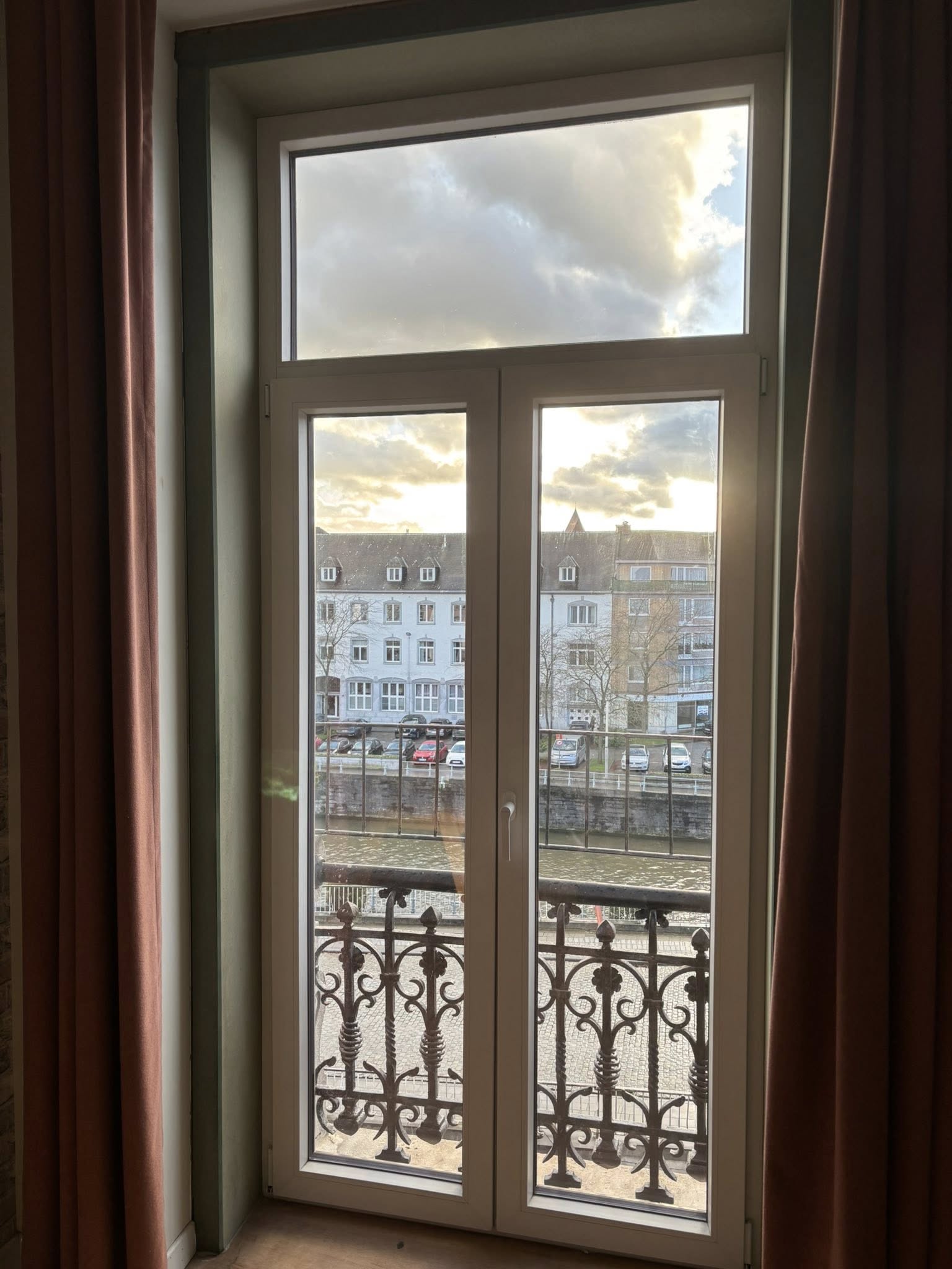 Châssis Deceuninck Renolit Structuré Gris Quartz RAL 7039 avec vitrages acoustiques + volets - Chantier à Tournai palais justice