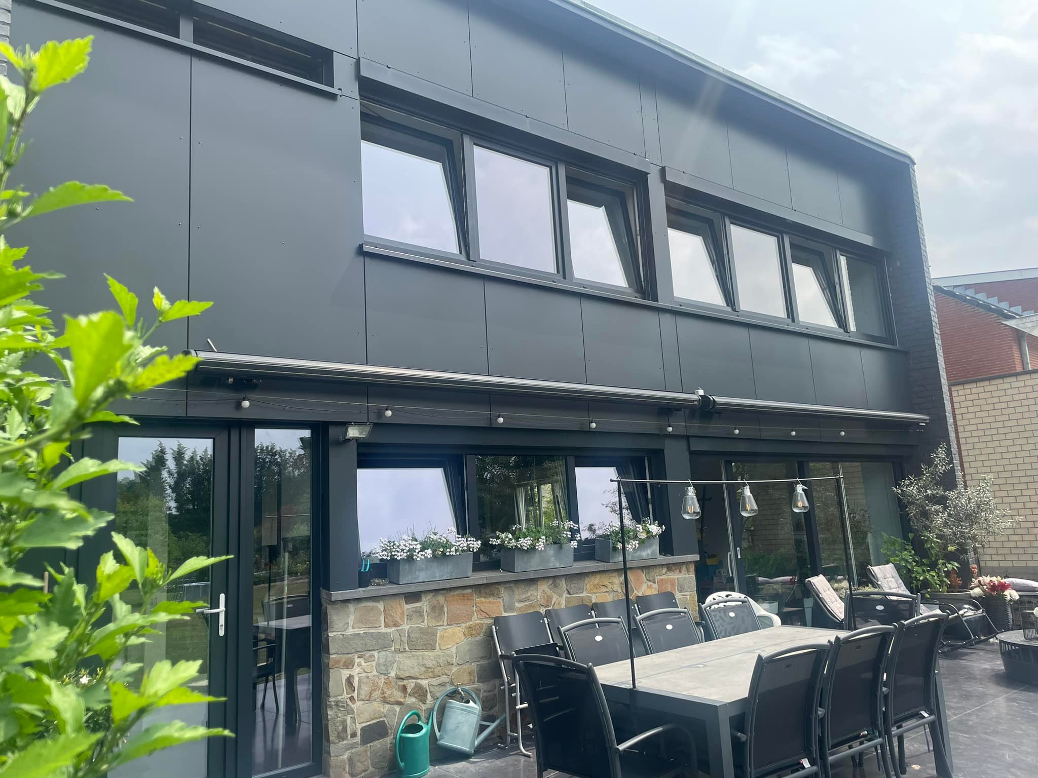 Protections Solaires Harol TC 130 avec moteur Somfy RTS - Coloris RAL 9006 Structuré - Chantier à Tournai