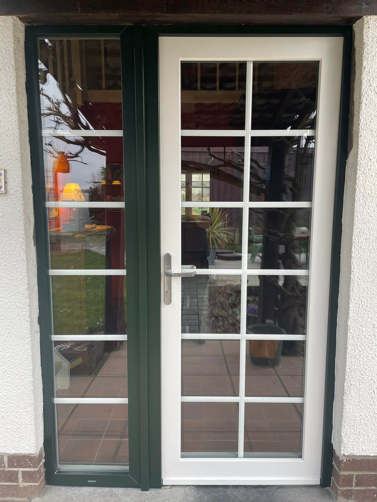 Porte PVC deceuninck zendow 5000 5 chambres haute performance isolation et acoustique en 70mm - quincaillerie de sécurité classe 2 - Panneau Frager modèle Solinox - vitrage dépoli acide 23mm optima